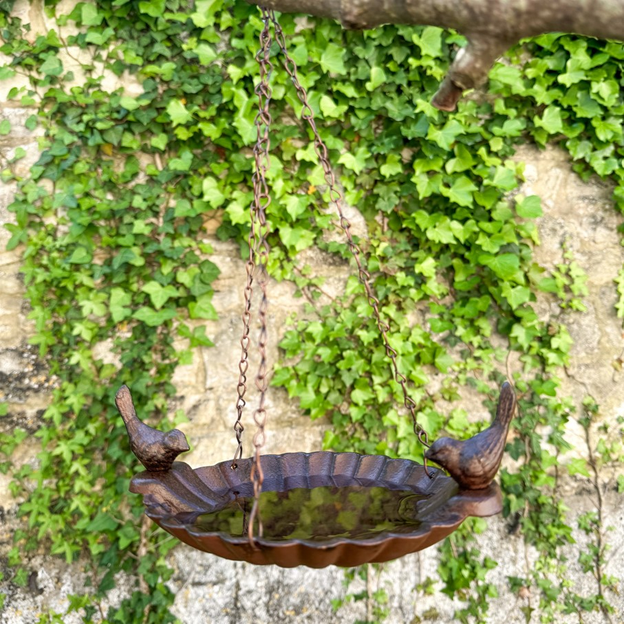 À suspendre et à remplir d'eau, cet abreuvoir offre aux oiseaux un endroit agréable pour boire, se baigner, se rafraichir. Ce bain en fonte constitue un dispositif essentiel pour nos amis ailés. Ils l'apprécieront d'autant plus en cas de forte chaleur.