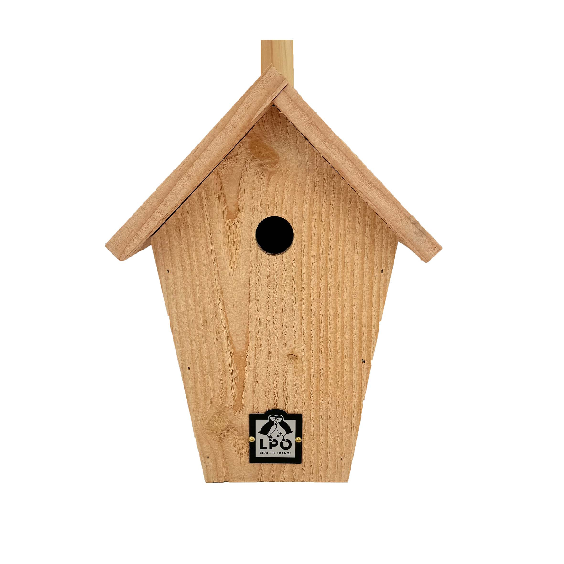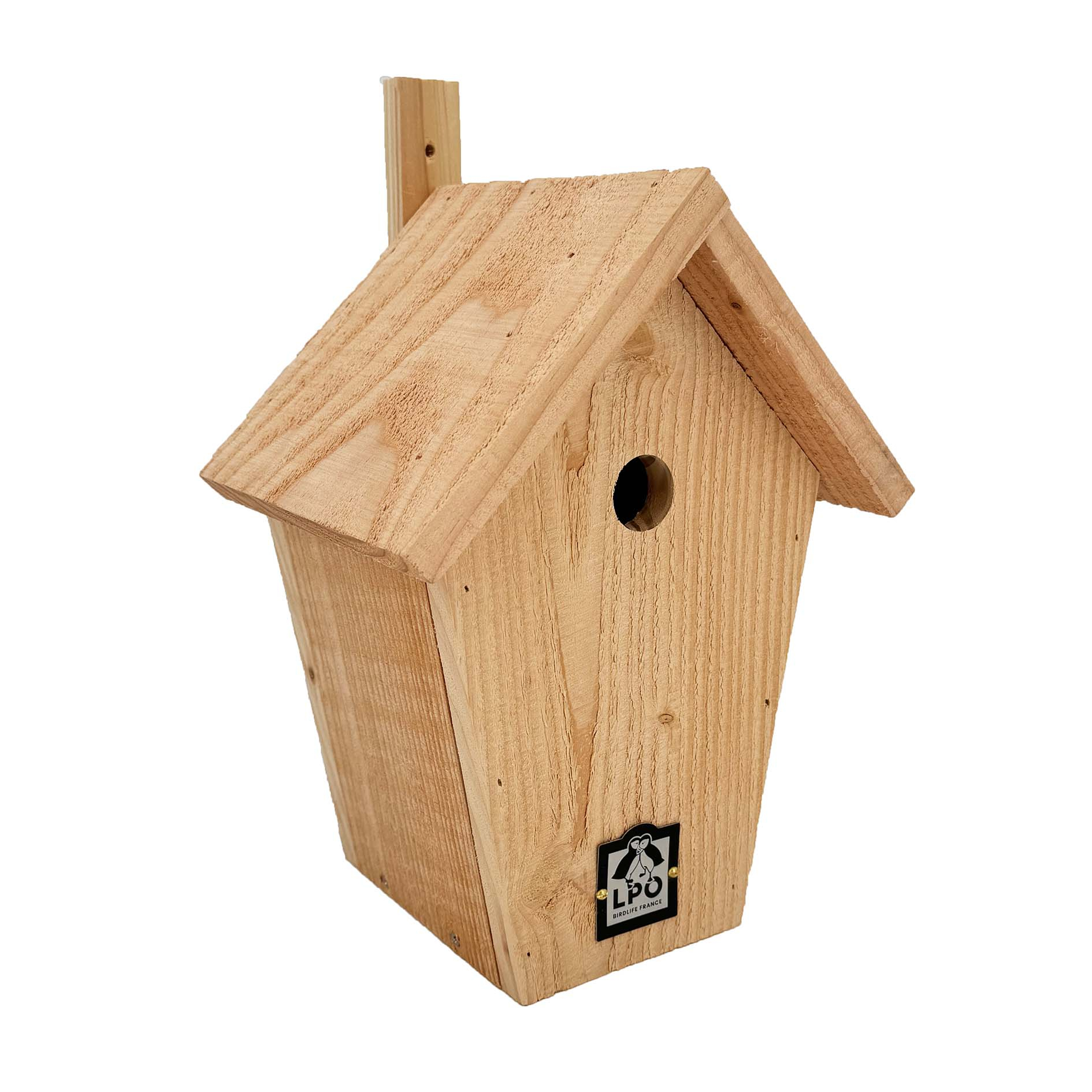 Fabriqué en sapin douglas, un matériau naturellement résistant aux intempéries et aux parasites, il promet une durabilité exceptionnelle face aux éléments. Le design ingénieux du nichoir se distingue par son toit incliné avec une légère avancée, offrant une protection accrue contre la pluie et le vent. Le trou d'envol de 28 mm, parfaitement dimensionné, assure un accès facile tout en garantissant la sécurité des oiseaux.