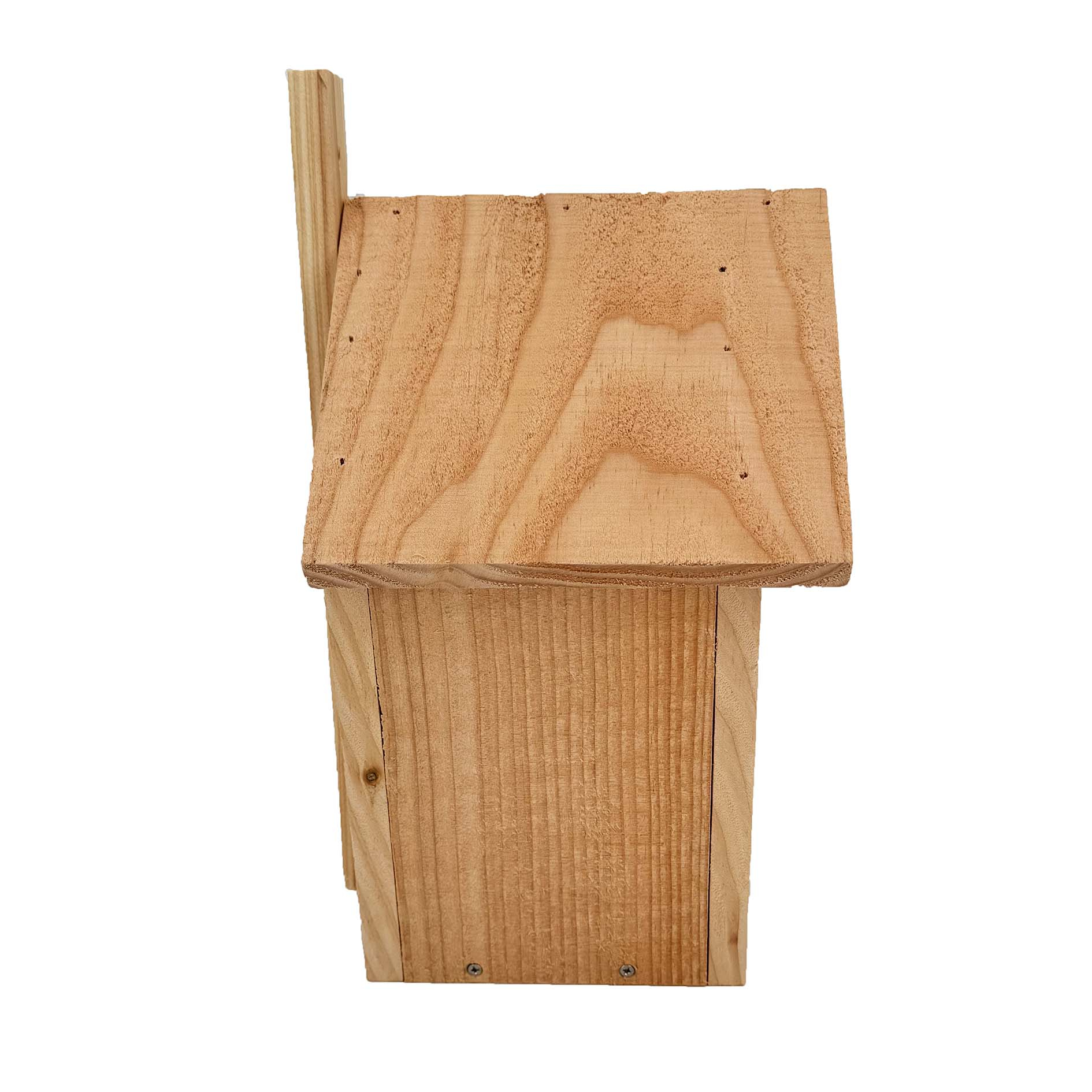 Nettoyage par le toit. Un des 2 versants est doté de 4 vis à retirer pour faciliter l'entretien de votre nichoir.