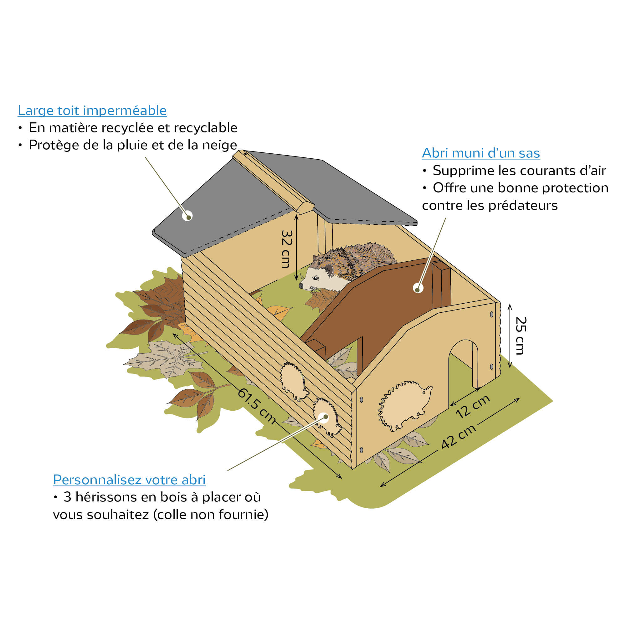 Très spacieux et fabriqué en France, l'abri La Villa est utile toute l'année pour les hérissons :