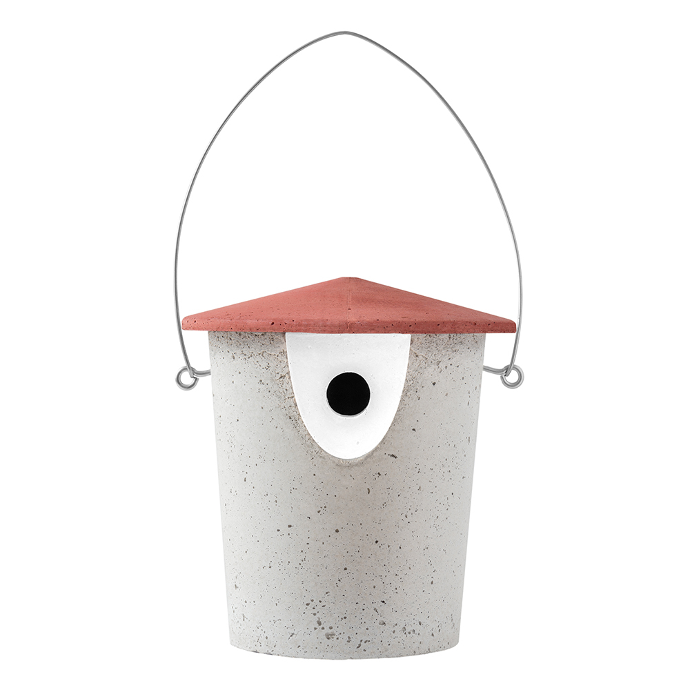 (Ref. JO1178)Nichoir modulable rouge en béton de bois, solide et design, pouvant accueillir différentes espèces d’oiseaux dans votre jardin.