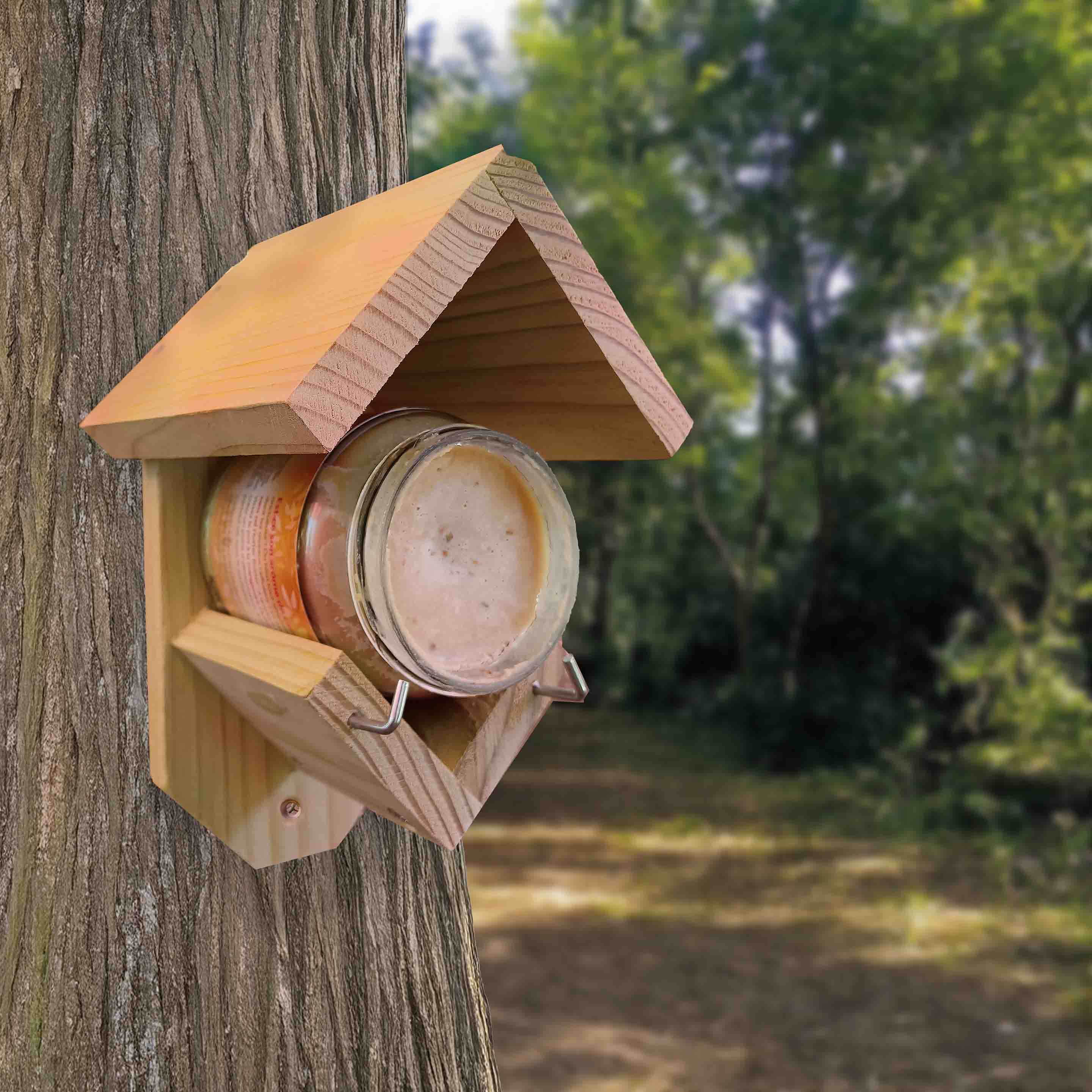 (Ref. JO1198)Mangeoire résistante et élégante en bois pour oiseaux, spécialement conçue pour tous les types de pots de nourrissage.