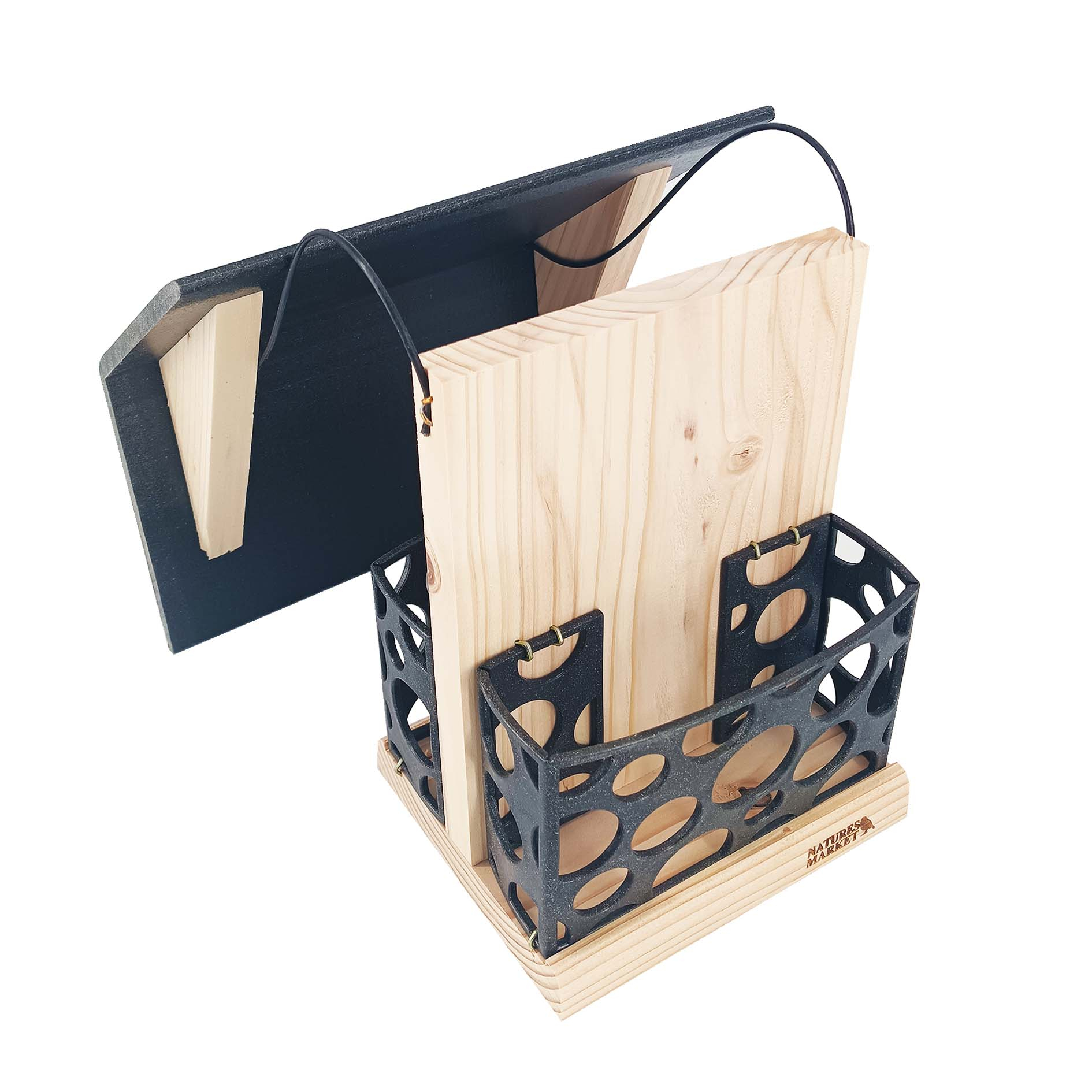 Résistante et pensée pour durer, cette mangeoire est équipée d’un câble solide, supportant les UV et les frottements, garantissant ainsi une suspension fiable. Une avancée du toit protège les pains de graisse de l’humidité, permettant de préserver leur qualité même en cas d’intempéries.