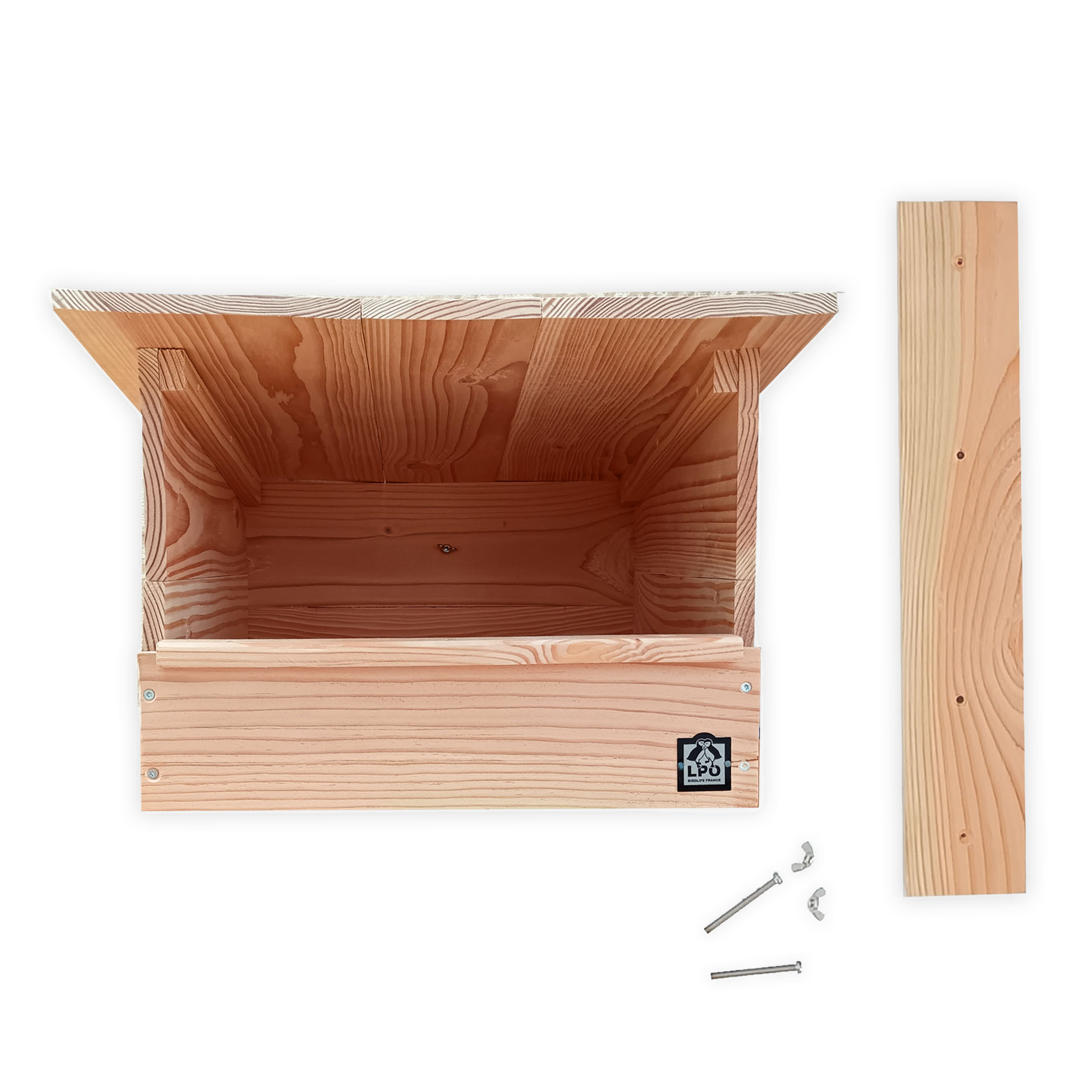 Le Nichoir LPO Faucon crécerelle est conçu en pin Douglas, un bois imputrescible naturellement résistant et issu de forêts françaises gérées durablement.
