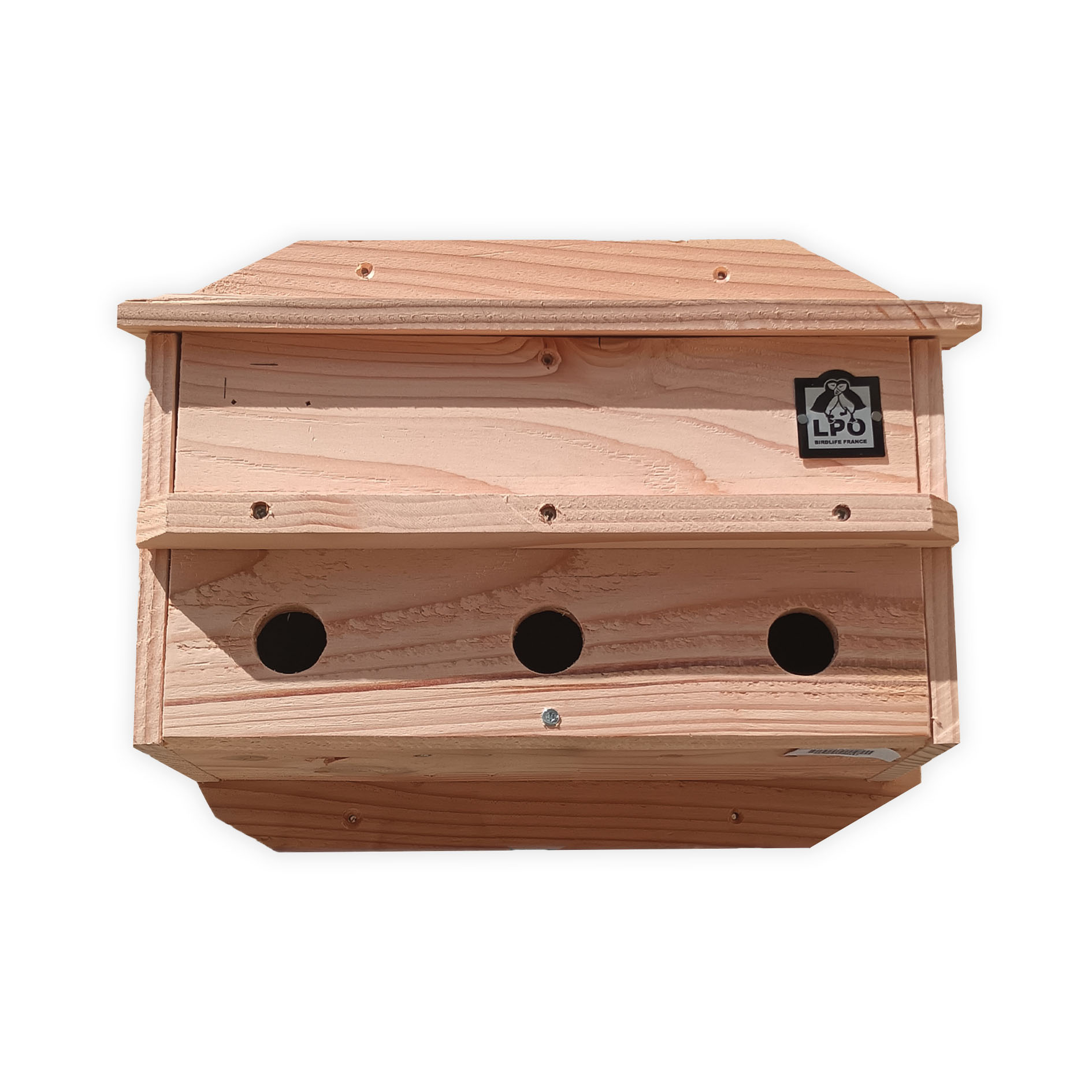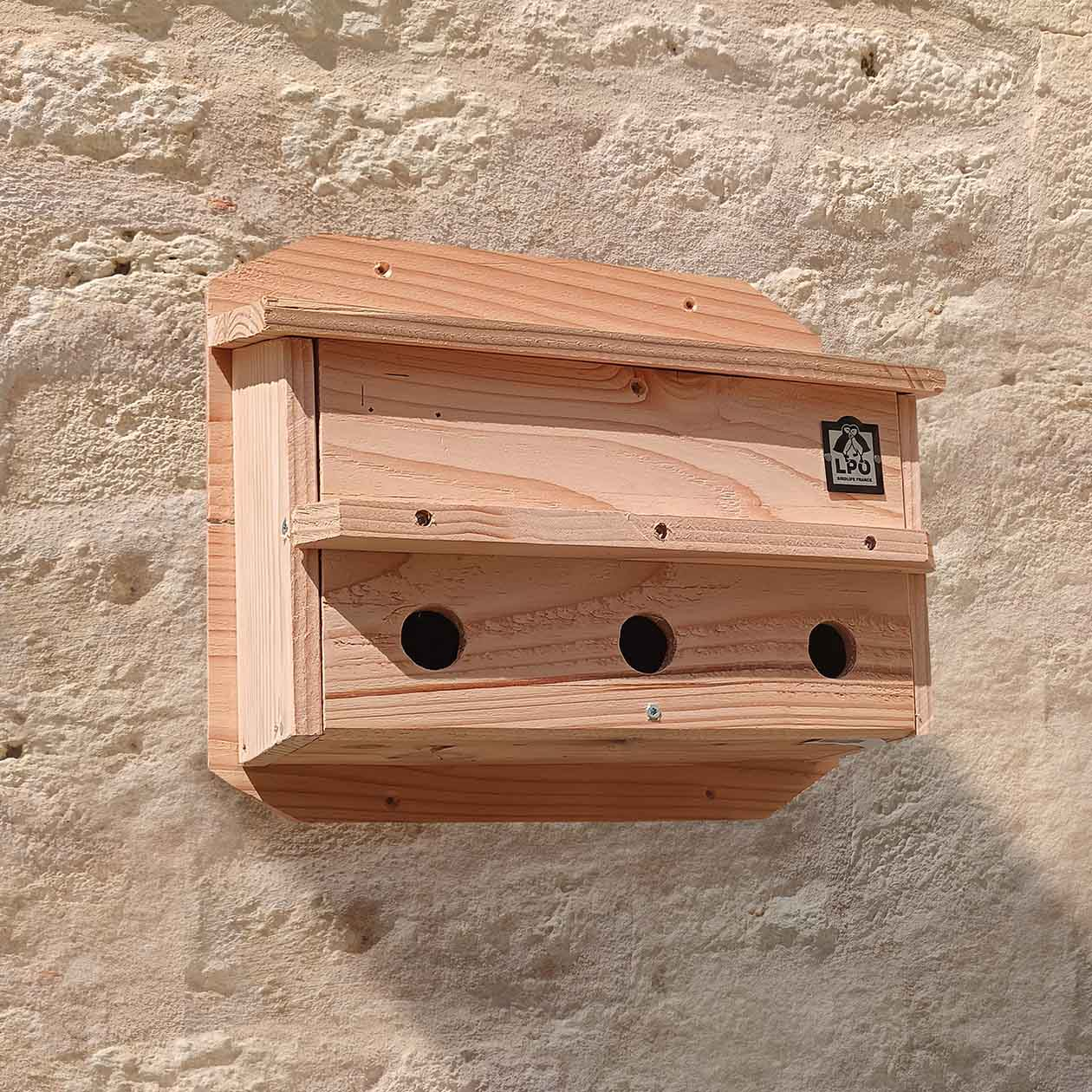 (Ref. JO1224)Nichoir LPO en bois durable, fabriqué en France, spécialement conçu pour les colonies de moineaux avec 3 chambres séparées.