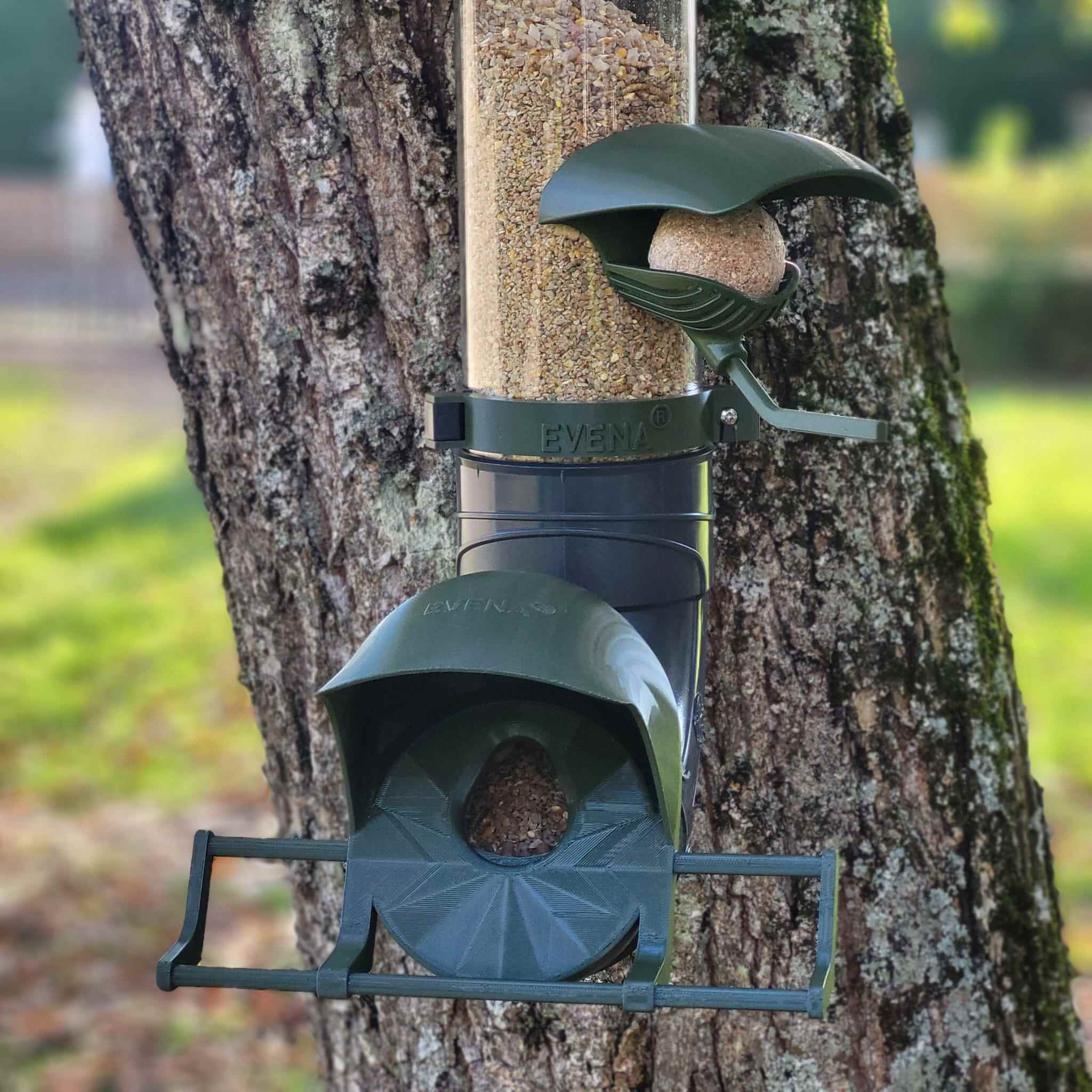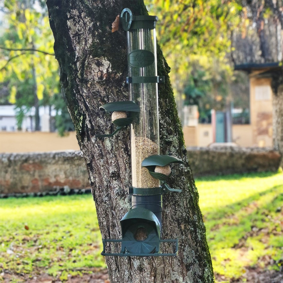 Sa forme tubulaire favorise une excellente conservation des graines, à l’abri de l’humidité et des intempéries. Grâce à sa conception, la distribution de nourriture se fait de manière fluide et régulière. Les perchoirs intégrés sont pensés pour offrir un confort optimal aux oiseaux, leur permettant de s’alimenter en toute sécurité et dans des conditions idéales.