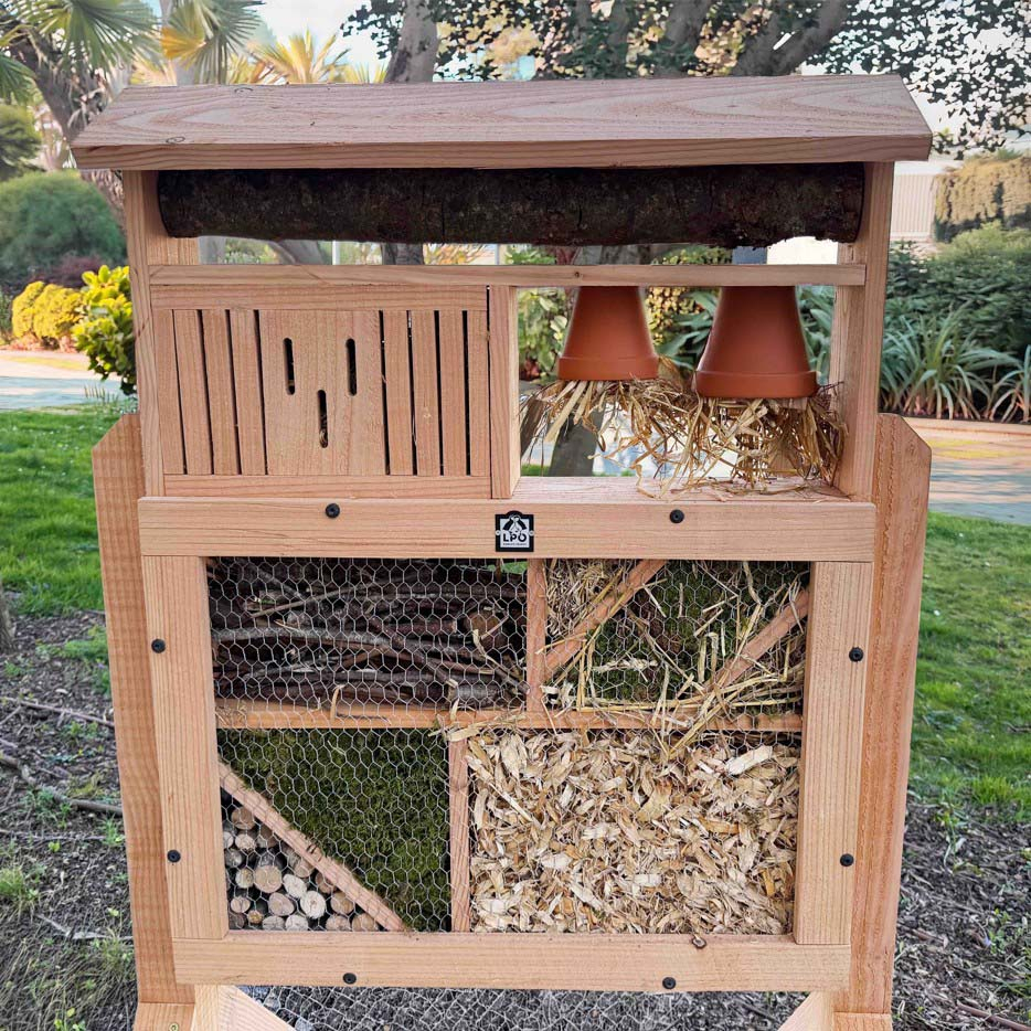 L'hôtel à insectes géant est un outil pédagogique recommandé pour sensibiliser tous les publics à la présence des insectes auxiliaires, si utiles à la biodiversité. Il sert à l'observation de certaines espèces : coccinelles, perce-oreilles, chrysopes, syrphes, osmies et abeilles solitaires.