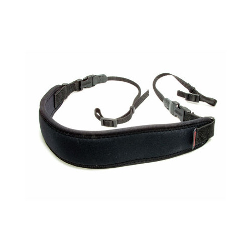 Courroie de cou standard réglable pour jumelles et appareils photos. En néoprène, elle réduit la sensation d'inconfort et soulage efficacement la pression et la tension autour du cou et des épaules. Coloris noir.