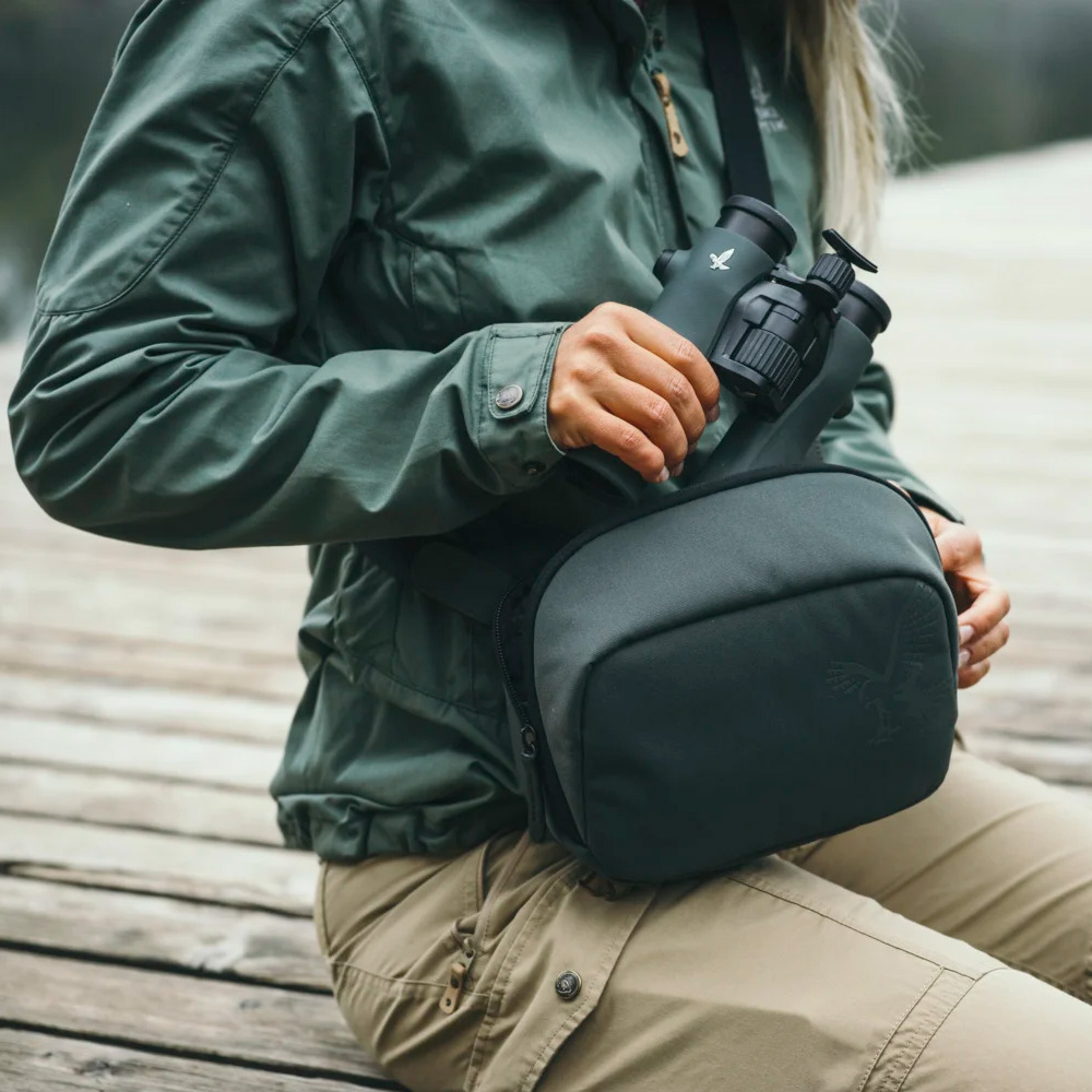 Une sacoche conçue entièrement en matières recyclées, pour des jumelles à portée de main en toutes circonstances.