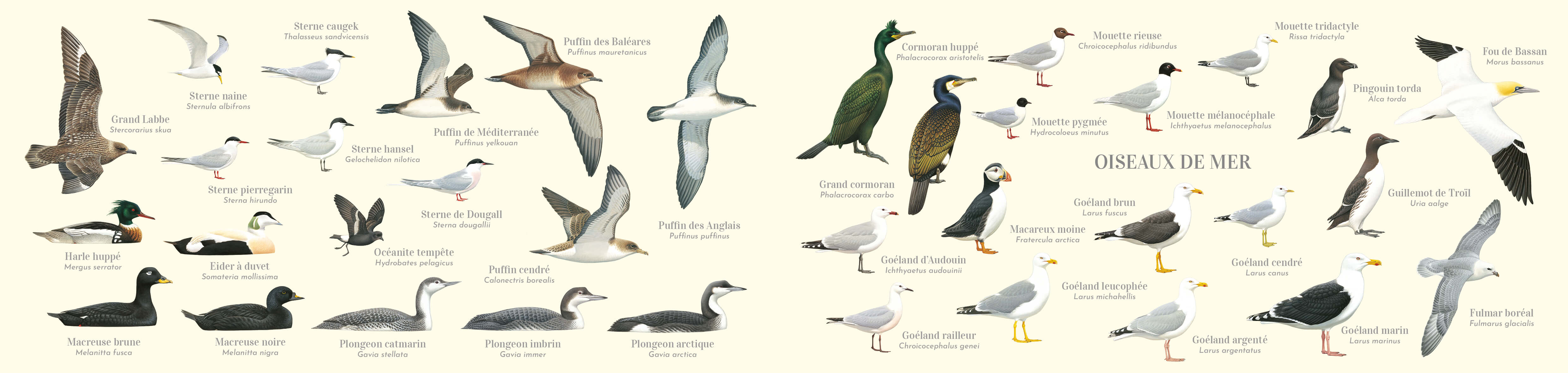 Les oiseaux de mer réunis sur une double carte postale