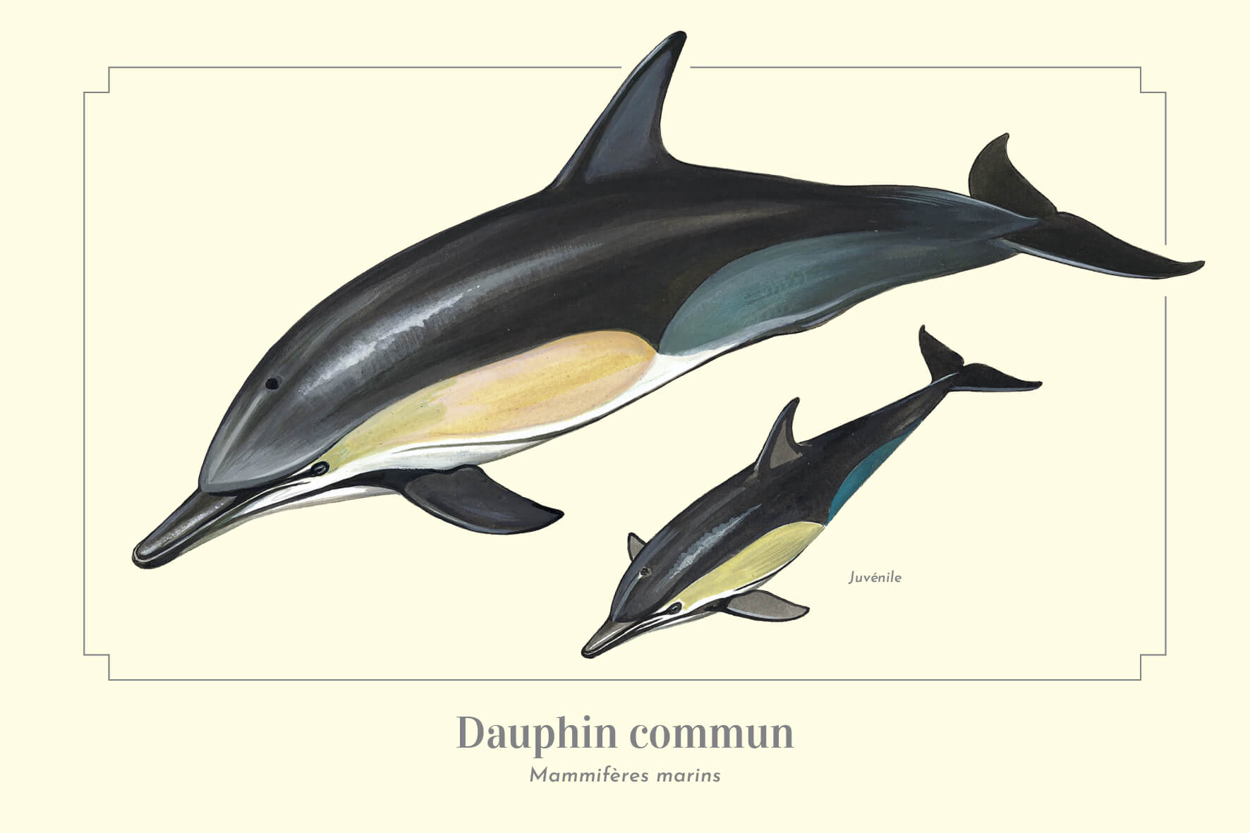 Cette carte postale simple, au format 10 x 15 cm, capture la vivacité du Dauphin commun grâce une illustration délicate et détaillée.