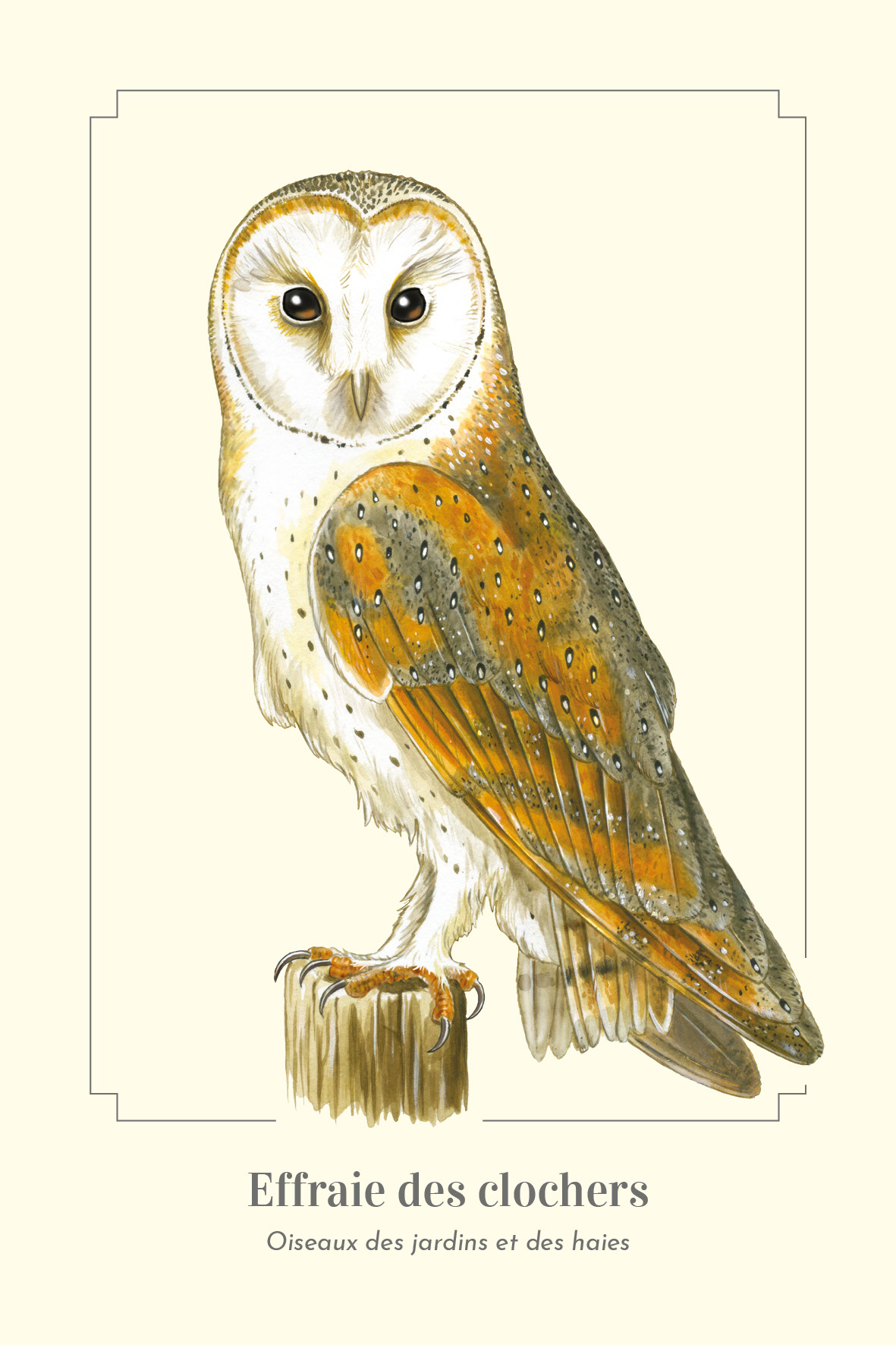 Cette carte originale illustrée d'une chouette Effraie des clochers fait partie d'une série spéciale de cartes postales sur les oiseaux du jardin et la faune sauvage de France.