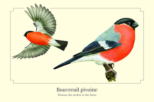 Carte postale 10 x 15 cm - Bouvreuil Pivoine