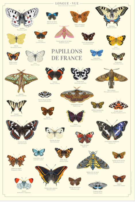(Ref. PA0630)Une planche naturaliste des papillons de France : un poster à la fois éducatif et décoratif, imprimé à l'encre végétale.