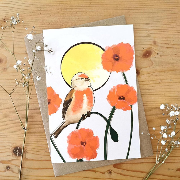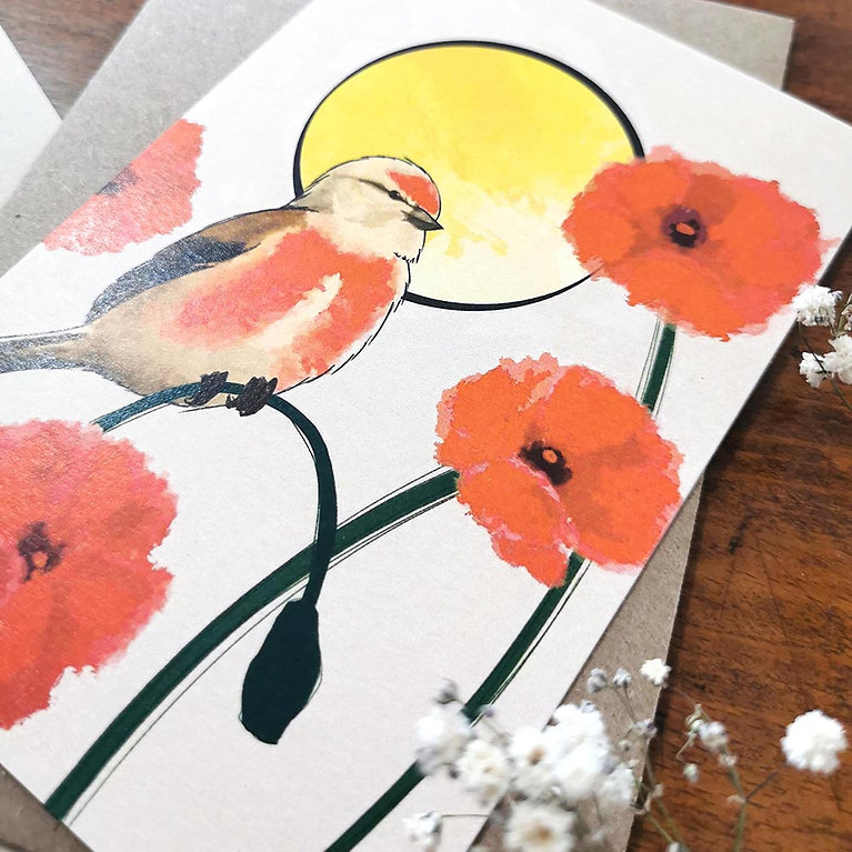 Une carte postale originale illustrée d'une Linotte mélodieuse et imprimée sur papier épais.