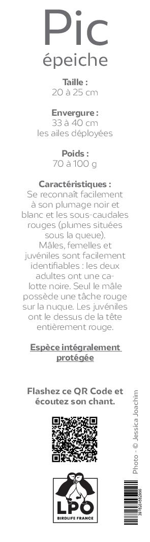 Ce marque-page LPO est illustré sur sa face avant d'une photo captivante du Pic épeiche, espèce emblématique de nos forêts. Observez son plumage aux couleurs chatoyantes, son dos noir strié de blanc et sa tête rouge écarlate.