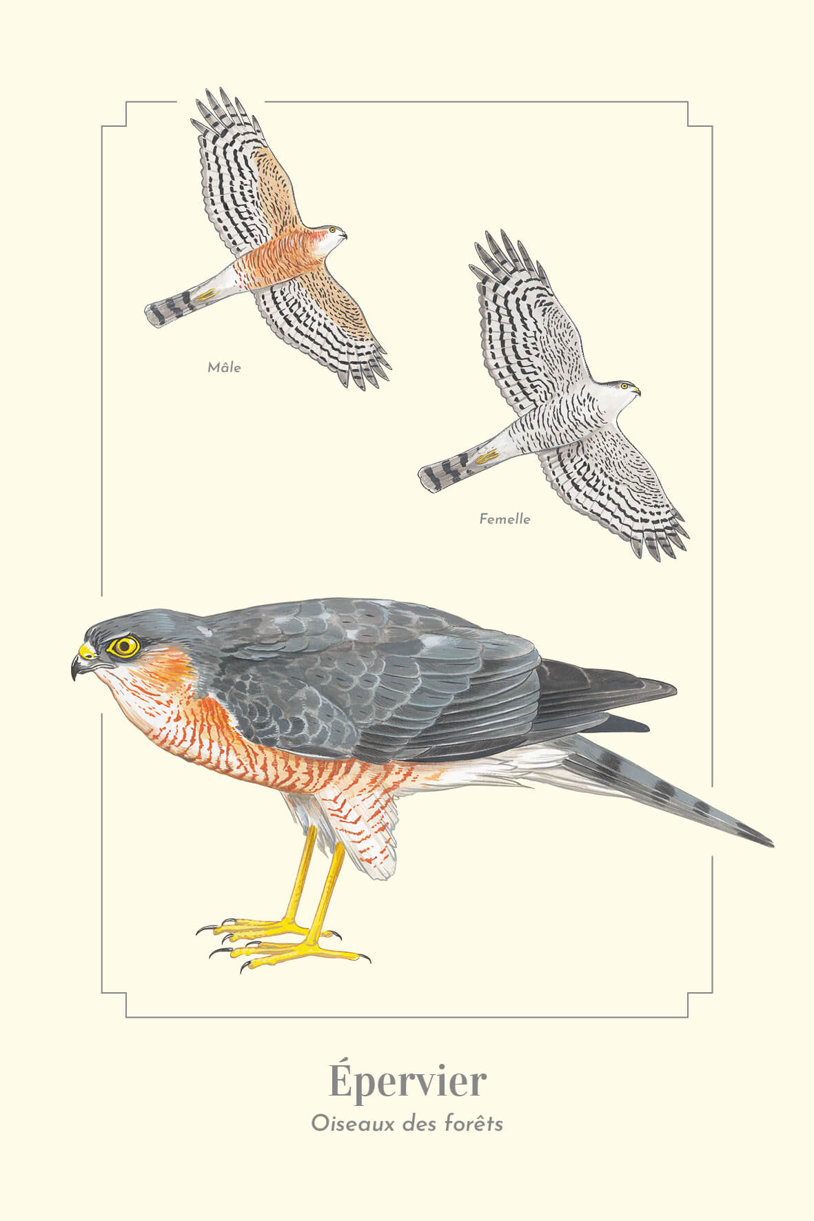 Une carte postale capturant la puissance et la vivacité de l’Epervier, idéale pour les passionnés d'art et de faune.