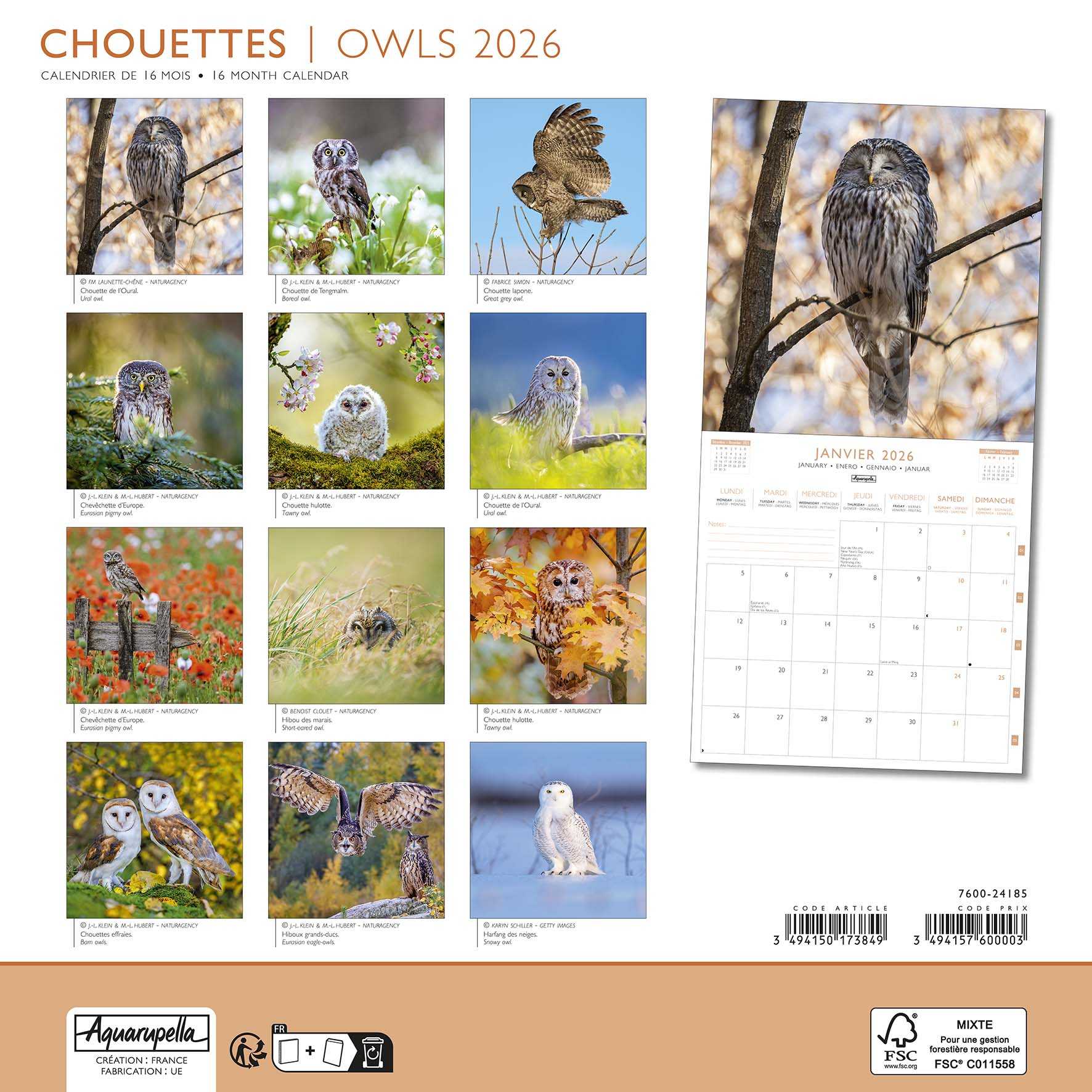 Le calendrier mural 2026 Chouettes et Hiboux est un calendrier 16 mois, couvrant la période de septembre 2025 à décembre 2026. Il se présente sous un format vertical, pratique à accrocher, et s’illustre chaque mois par une superbe photographie mettant en scène les majestueux rapaces nocturnes : les chouettes et les hiboux. Ces images inspirantes accompagnent le rythme des saisons et offrent une pause visuelle apaisante au fil des mois.