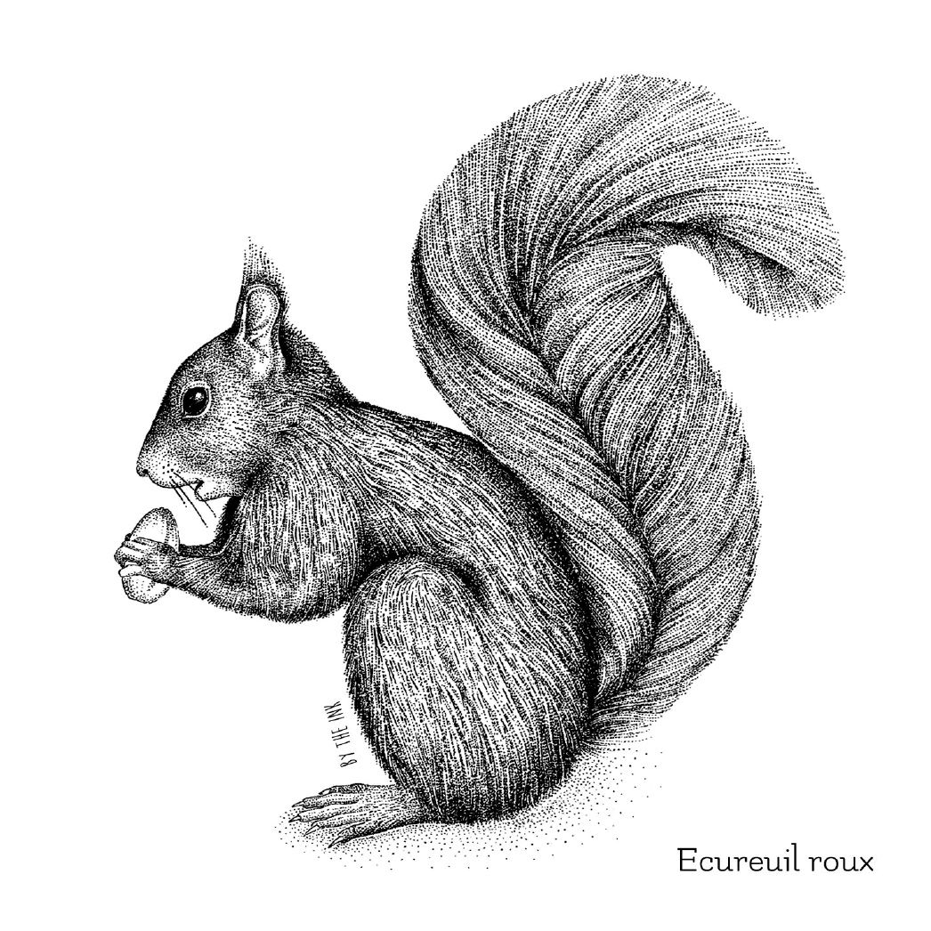 Cette carte postale présente la jolie illustration d’un Écureuil roux, dessinée en pointillés noir et blanc par l’illustratrice rochelaise, By The Ink. Son univers poétique et contemplatif, à la fois hors du temps, révèle la beauté du vivant avec délicatesse. Chaque trait, précis et sensible, reflète une véritable finesse graphique et un regard naturaliste.