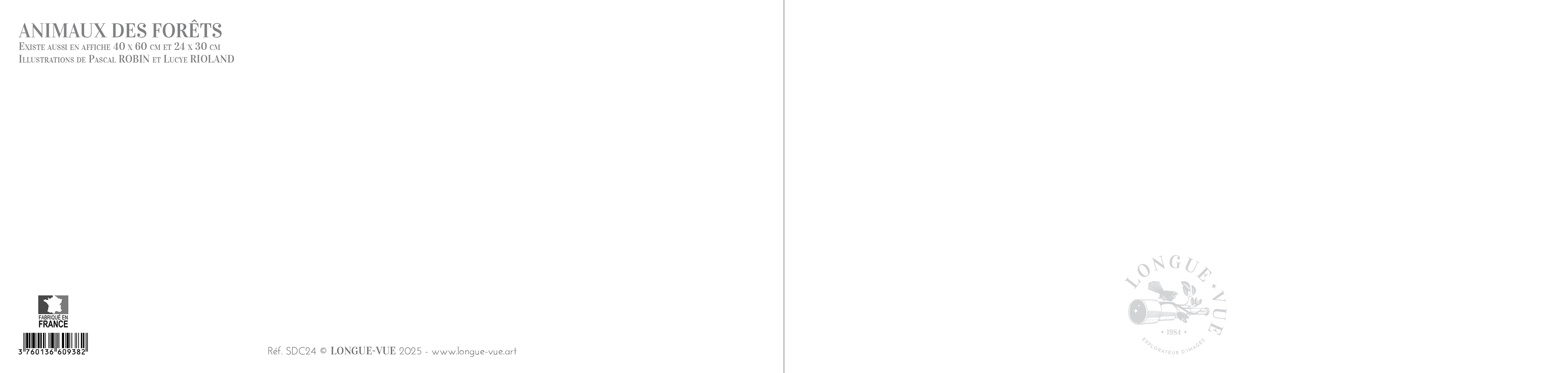 Cette carte postale double met à l’honneur les animaux des forêts, représentés avec un réalisme saisissant grâce au talent de Pascal Robin, illustrateur français spécialisé dans le naturaliste. Imprimée en France à partir d’encres végétales sur un papier couché mat 300 g/m² labellisé PEFC, elle s’inscrit dans une démarche respectueuse de l’environnement tout en valorisant la beauté de la faune sauvage.