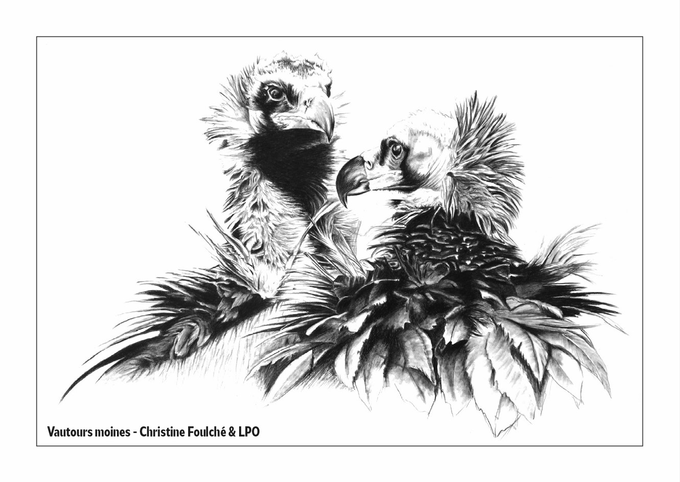 (Ref. PA0800)Carte postale LPO naturaliste, illustrant les Vautours moines avec finesse et poésie, pour les amoureux d’art et de nature.