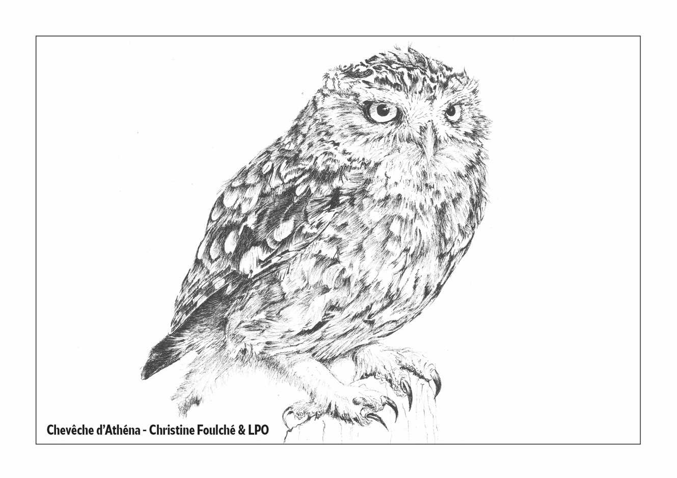 Cette carte postale fait partie de la collection LPO illustrée par Christine Foulché, une série artistique qui rend hommage à la beauté du monde animal. Chaque illustration saisit avec finesse et sensibilité l’élégance des espèces sauvages, comme ici la Chevêche d’Athéna, petite chouette aux grands yeux jaunes, discrète et familière des campagnes.