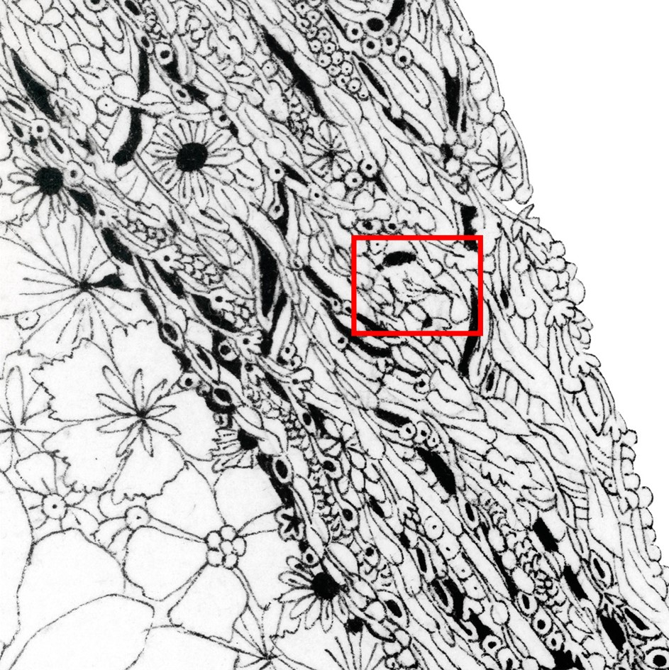 L’œuvre originale, réalisée à la main par Camille Poli, artiste militante pour la protection de la faune et de la flore, a été dessinée à la plume et à l’encre de Chine sur un papier chiffon fabriqué artisanalement. Grâce à l’usage d’une loupe, chaque détail a été travaillé avec une minutie extrême, offrant un hommage sensible à la beauté délicate du vivant.