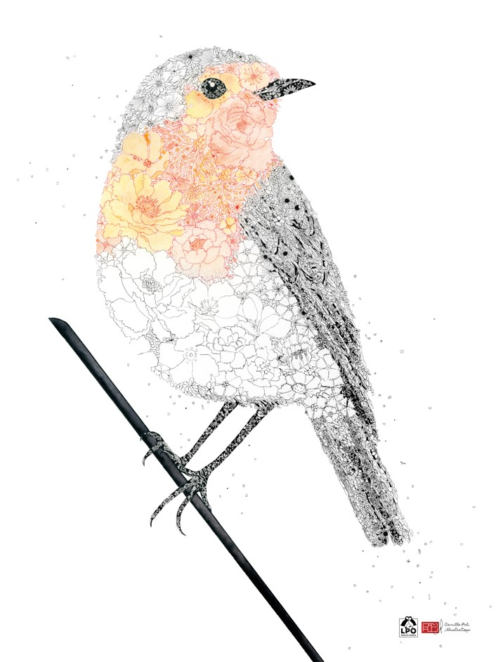 Issue d’une collaboration exclusive avec la LPO, cette création soutient activement les actions et engagements de notre association. Camille Poli définit son travail comme un art engagé, où chaque dessin révèle la beauté fragile du vivant et sensibilise à l’urgence de préserver notre écosystème. Retrouvez toutes ses réalisations sur son site.