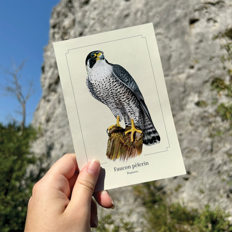 Cette carte postale met à l’honneur le Faucon pèlerin, rapace majestueux, représenté avec un réalisme saisissant grâce au talent de Pascal Robin, illustrateur français spécialisé dans le naturalisme. Imprimée en France à partir d’encres végétales sur un papier couché mat 350 g/m² labellisé PEFC, elle s’inscrit dans une démarche respectueuse de l’environnement tout en valorisant la beauté de la faune sauvage.