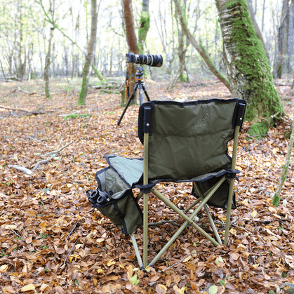 La chaise Koklass V2 a été spécialement conçue pour que sa hauteur d'assise soit adaptée à l'utilisation à l'intérieur d’une tente d’affût, que ce soit pour les photographes animaliers, ornithologues ou observateurs de la faune.