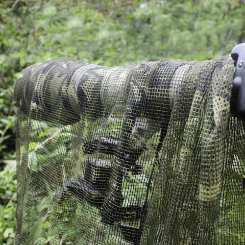 Écharpe filet kaki polyvalente pour le camouflage, la dissimulation du matériel, et la réduction des bruits de déclenchement.