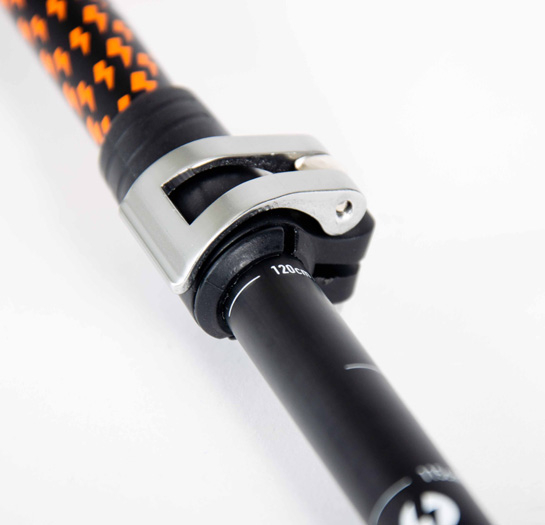 Grâce au système breveté Flashlock®, le déploiement des MK2 s’effectue d’une seule main, en quelques secondes seulement. Les trois brins s’alignent d’eux-mêmes dès la prise en main et un simple contact au sol verrouille le tout. Pour replier les bâtons, il suffit de pincer au niveau des clips noirs et de tirer légèrement sur les brins. Un attache-brin élastique permet de les maintenir repliés (longueur pliée : 42 cm) pour un transport pratique à la main ou accrochés sur un sac. La hauteur est réglable de 114 à 135 cm grâce au système de serrage Easylock® à clapets en aluminium, résistant après de nombreuses utilisations.