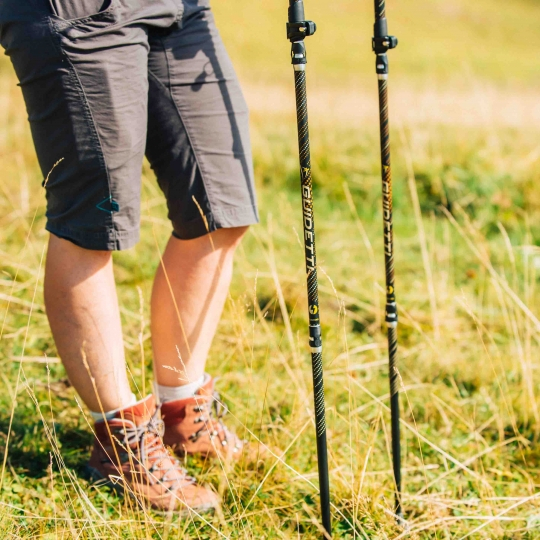 La conception de ces bâtons de marche pliables et durables repose sur un savant équilibre entre légèreté et robustesse : les trois brins supérieurs sont réalisés en carbone, un matériau reconnu pour sa capacité à absorber efficacement les vibrations, tandis que le brin inférieur est en aluminium 7075. Ce dernier, utilisé dans l’aéronautique, confère au bâton une résistance accrue à la torsion et à la déformation. Ce compromis entre carbone et aluminium les rend particulièrement adaptés aux terrains minéraux ou aux pierriers.