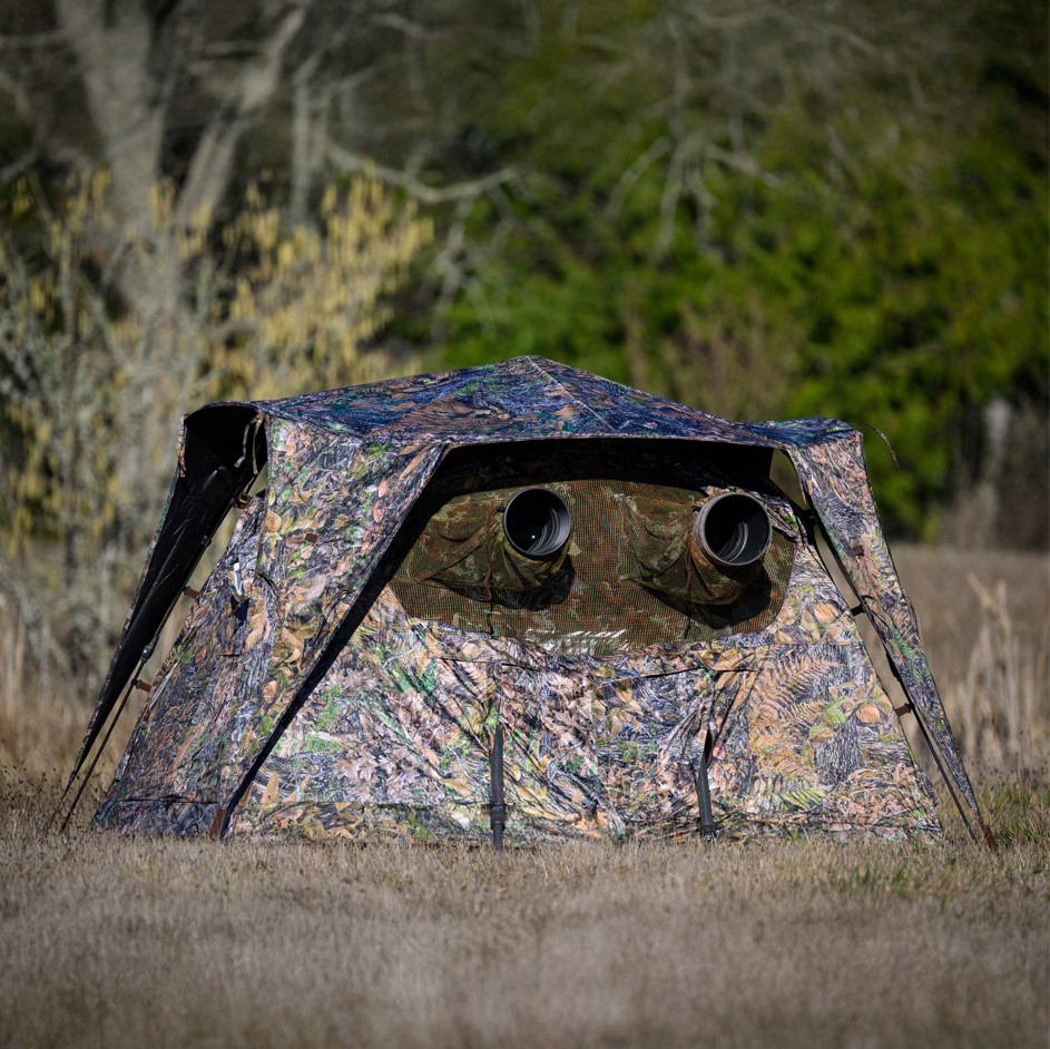 La tente d’affût Tragopan Monal V3 a été conçue pour offrir un confort et une polyvalence inégalés. Plus grand modèle de la gamme, cet affût spacieux peut accueillir deux personnes ou un utilisateur manipulant plusieurs appareils simultanément.